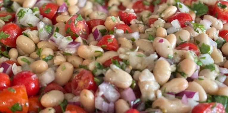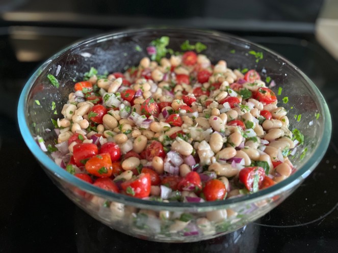 This Northern White Bean salad is a no-cook recipe that goes great as a side dish for any main meal. I personally love pairing salads like these with my lunch which is usually some chicken and rice. I try to change up the salad every week to keep the meal a bit interesting.