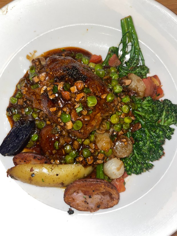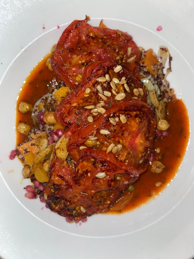 Another big win. This dish was also plant-based and gluten free. As you can probably see from the picture, this was very tomato heavy. I wasn’t expecting so much tomato (even though the dish says tomatoes), but this was really great. It’s got a mix of quinoa and leeks and a few other goodies. I ended up being full before finishing this but took the rest home in a box. I had it the next morning for breakfast with my omelet. It was a great mix!
