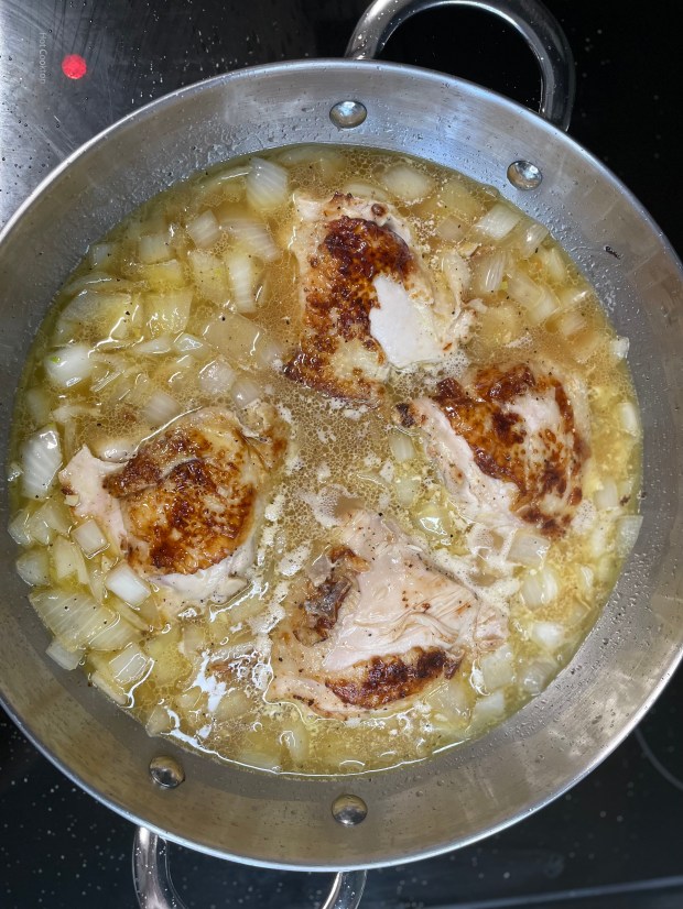 Although the recipe calls for bone-in chicken, it was a hassle to remove the bone when it was time for dinner. I would have much rather purchased boneless chicken. Next time!