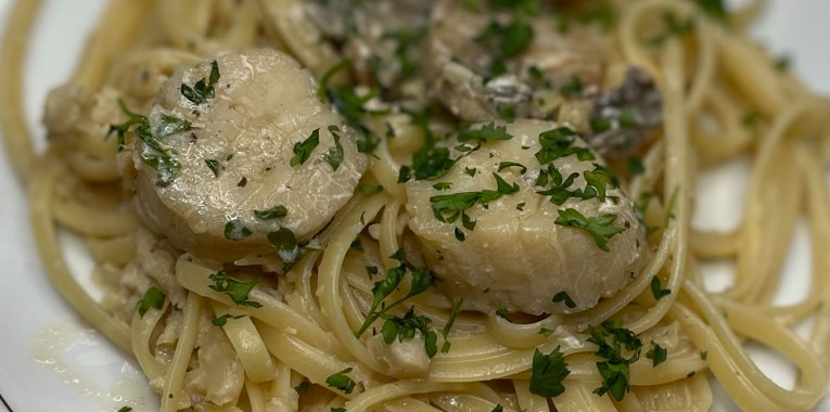Serve scallop, mushroom, and onion mixture over linguini. Add parsley and additional sauce as needed.